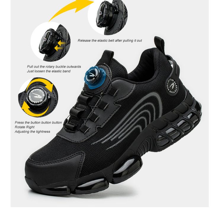 Sepatu Safety Pria Shoes Tali Putar Sporty Hitam Sepatu Kerja Proyek Tactical Outdoor Ringan Sepatu Safety Ujung Besi