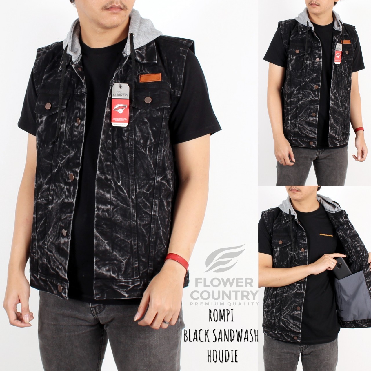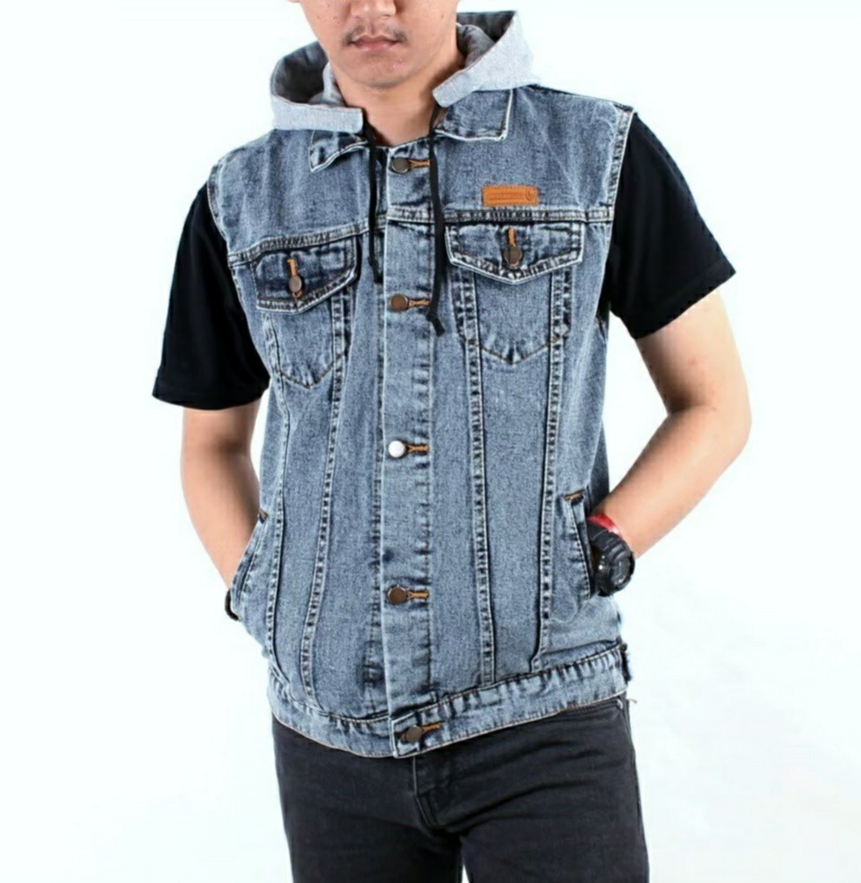 Jaket Rompi Jeans Pria Sandwash Jaket Jeans Hoodie Original