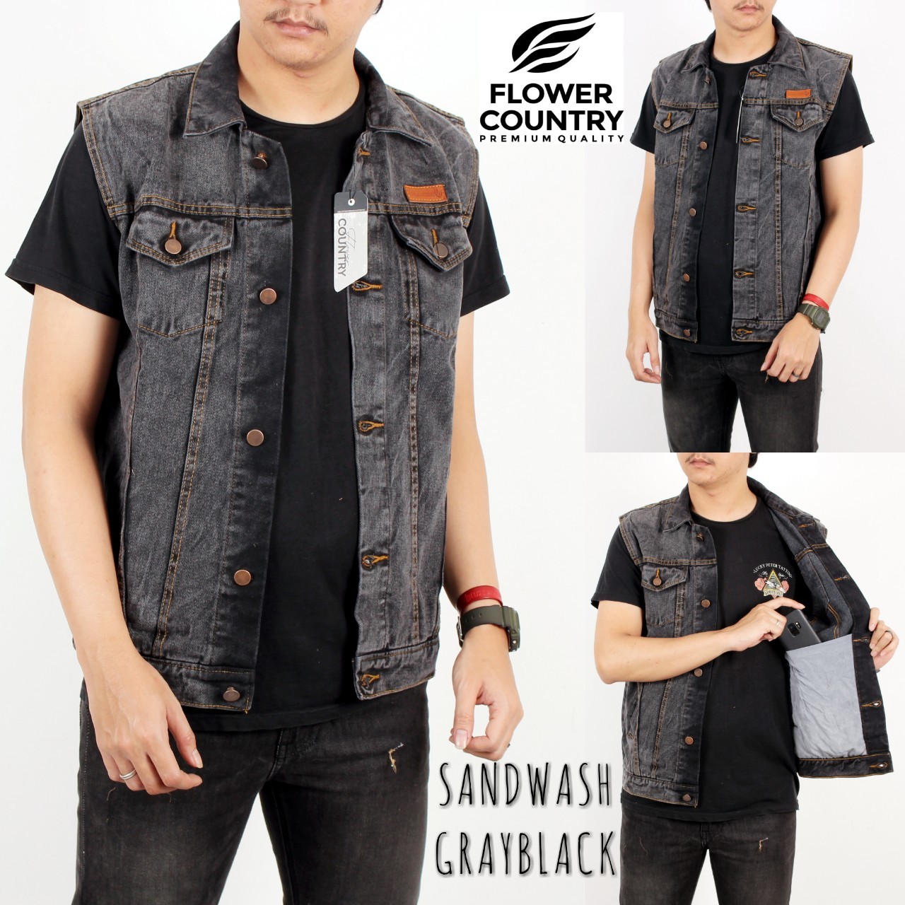 Rompi Pria Jaket Rompi Jeans Sandwash Grey Black Original Adreena Store