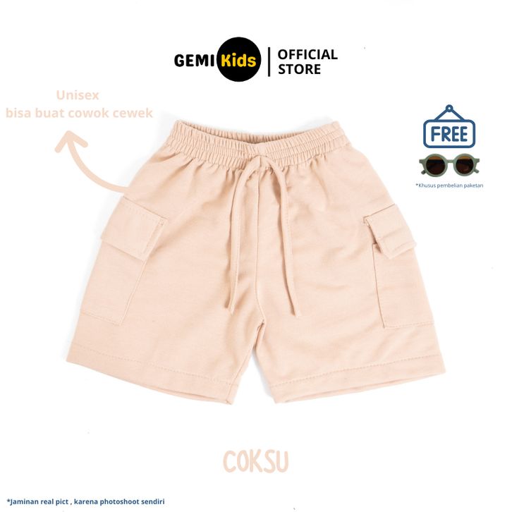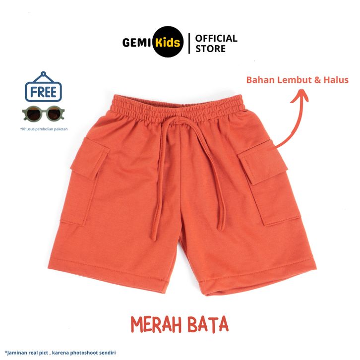 Celana Cargo Pendek Anak + Free Kacamata Bahan Baby Terry Unisex Laki-laki Perempuan Cowok Cewek- OTAWA
