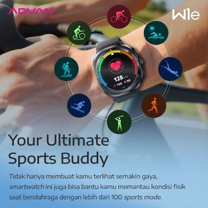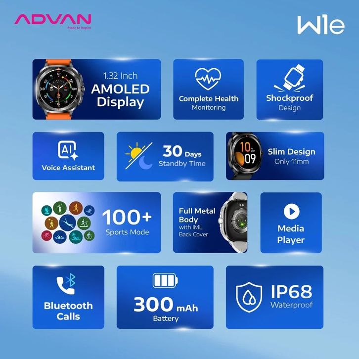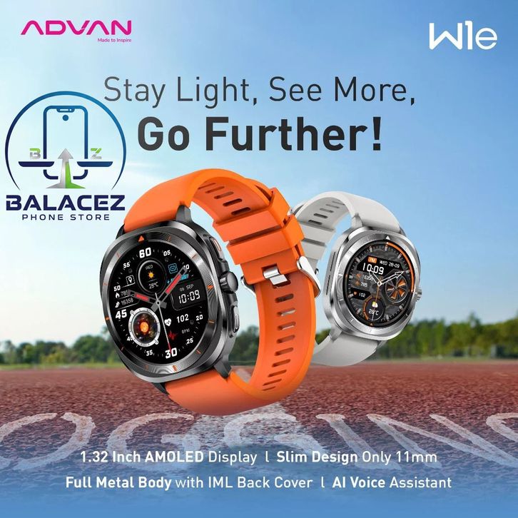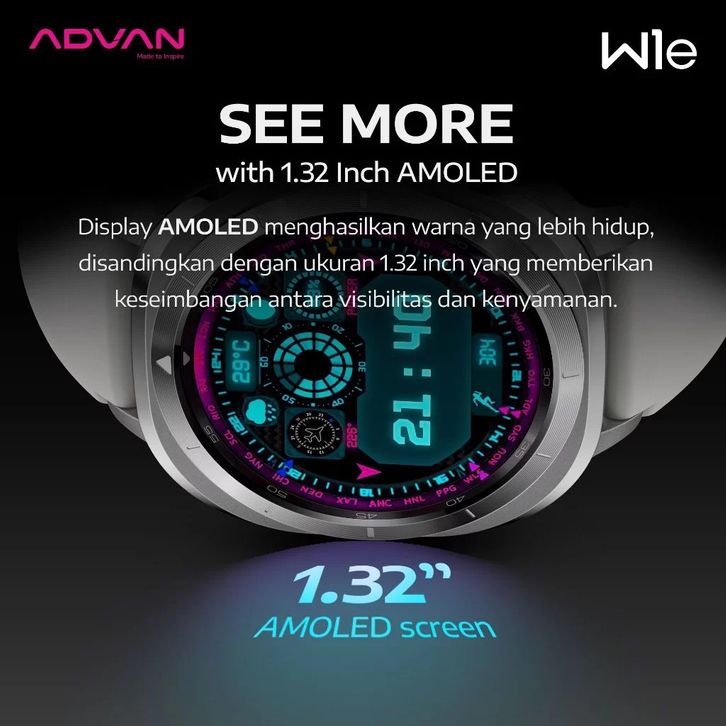 ADVAN Smartwatch W1e AMOLED Display 1.32 Inch 30 Days Standby Time 11mm Slim Design Full Metal Body - GARANSI RESMI