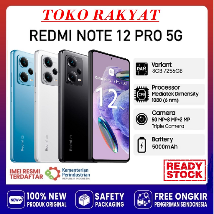 (BEBAS ONGKIR) Hp XIAOMI REDMI NOTE 12 PRO 5G RAM 8+256GB | Dimensity 1080 | Camera 50MP | Batery 5000mAh