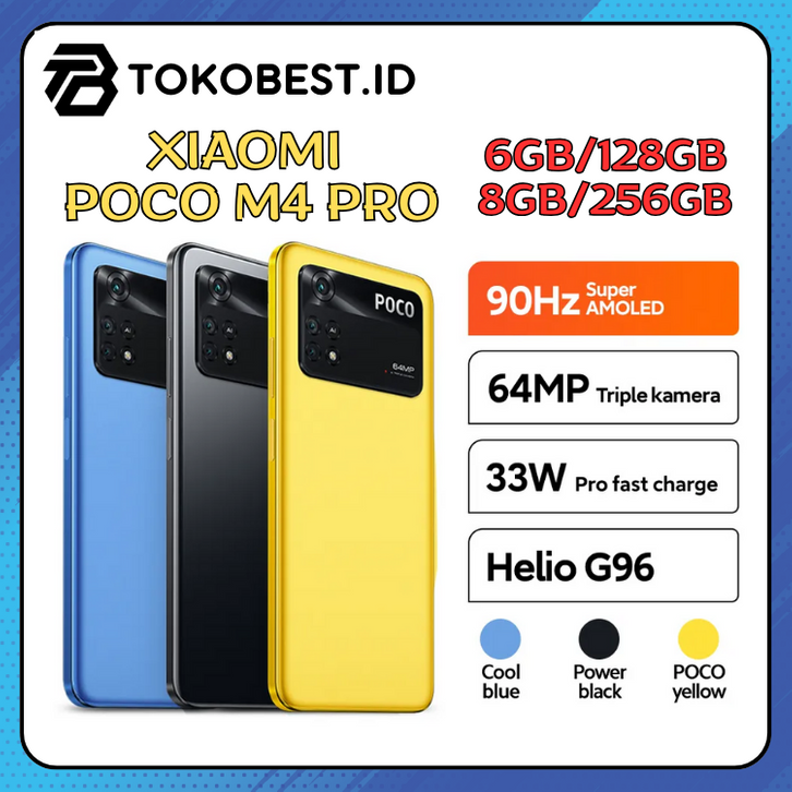 (free ongkir) Hp Xiaomi Poco M4 Pro 8GB/256GB 64MP Camera, 6.43" Display AMOLED, Mediatek Helio G96 garansi resmi