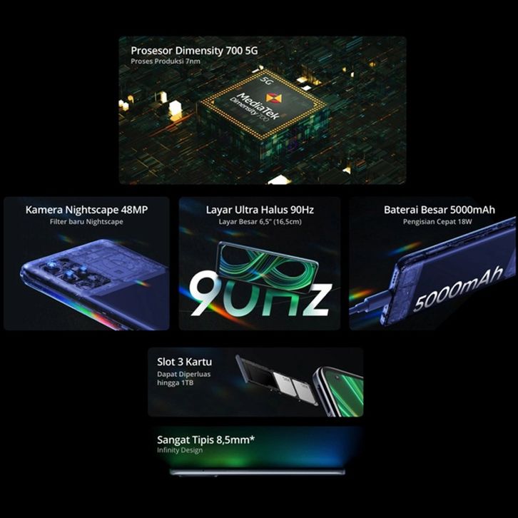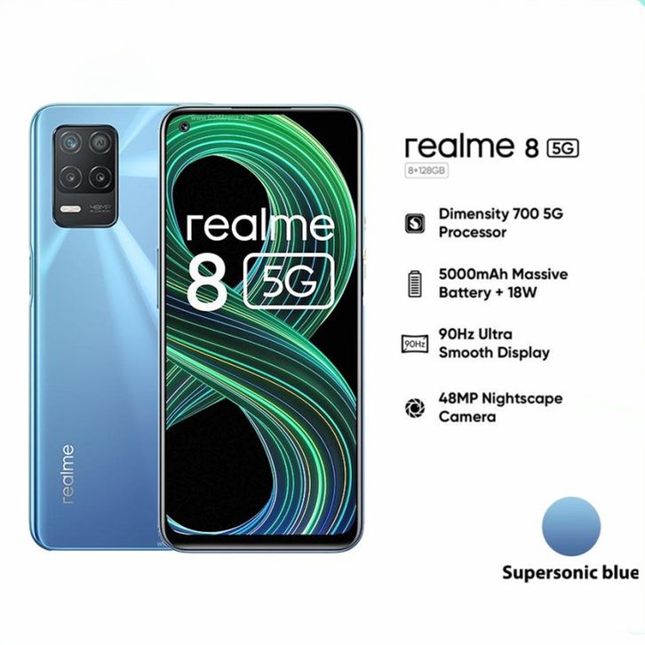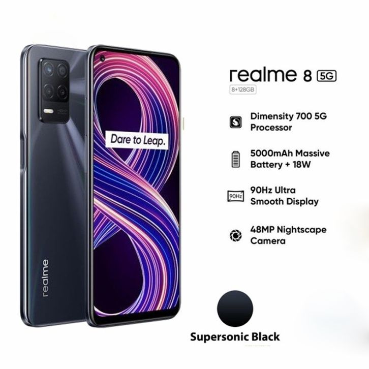 Realme 8 5G | NFC | 8/128 | OS Android | Chipset Mediatek Dimensity 700 | Baterai 5000 mAh | Garansi