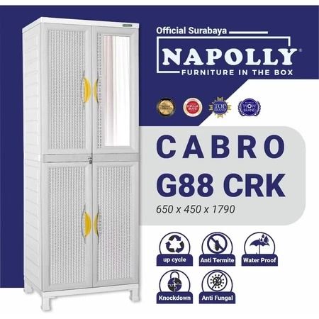 lemari pakaian napolly plastik cermin kunci full putih Gantung G-88