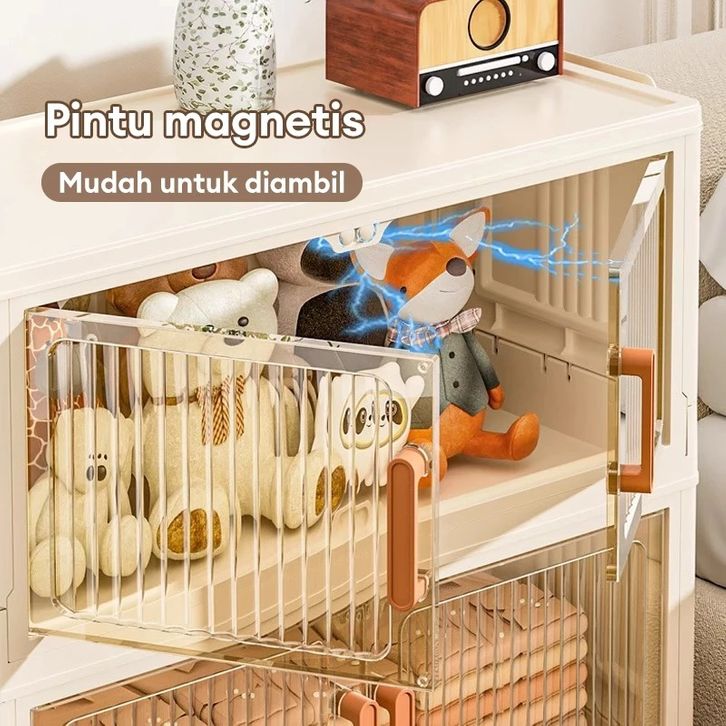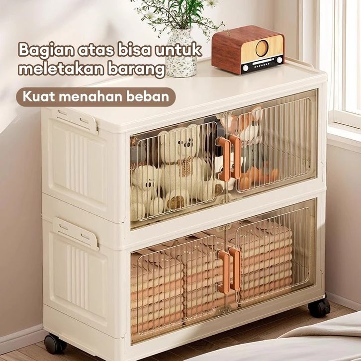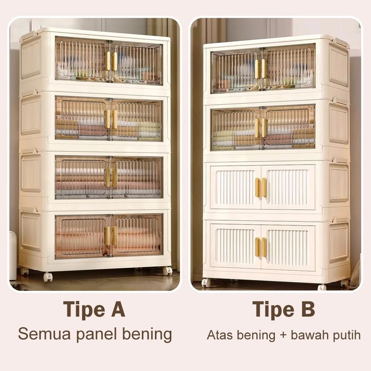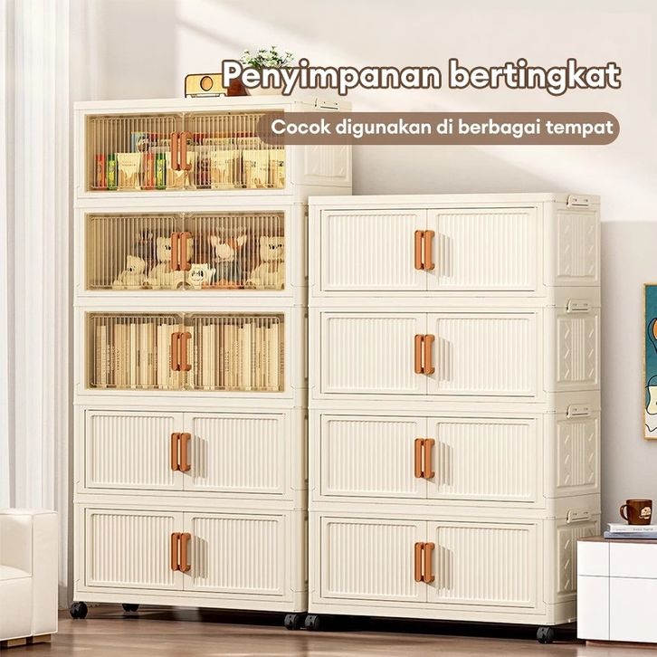 Lemari Lipat Lemari pakaian plastik Rak Kabinet Susun Lipat Lemari Serbaguna ada Roda Rak Sepatu