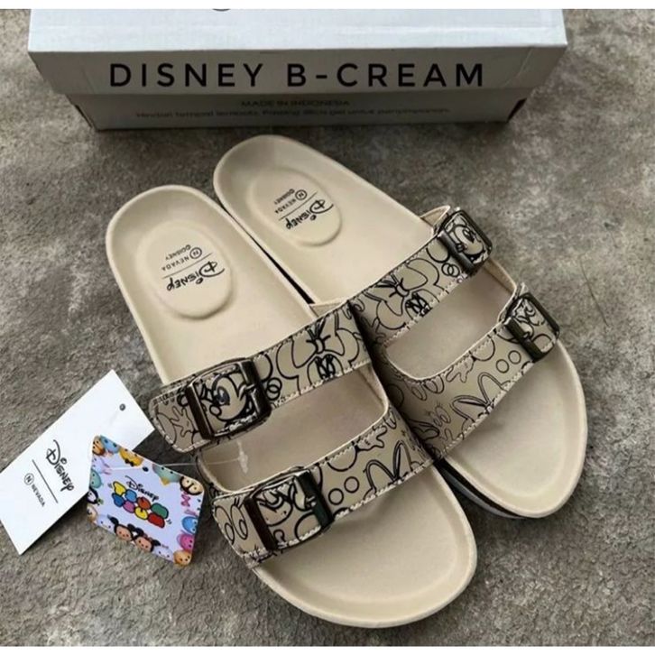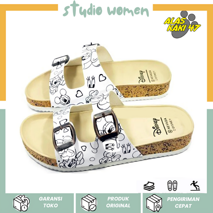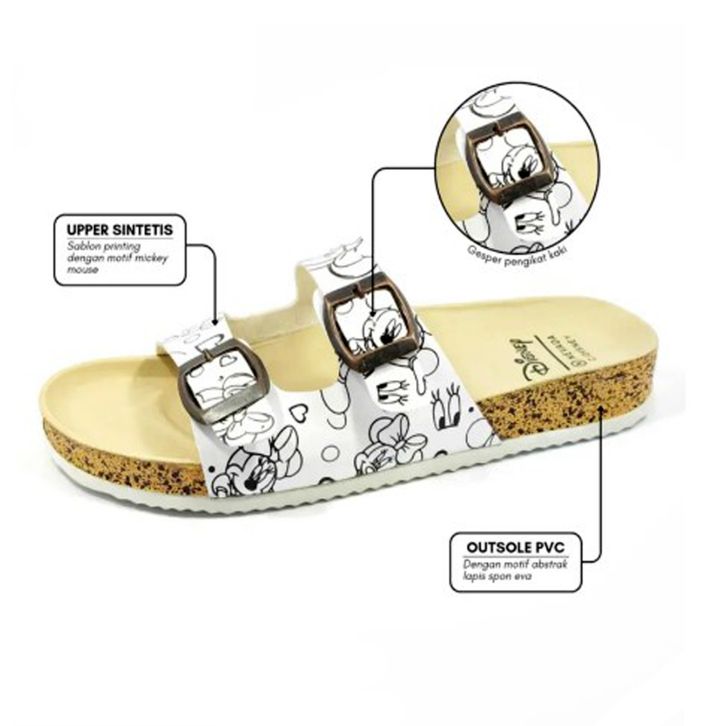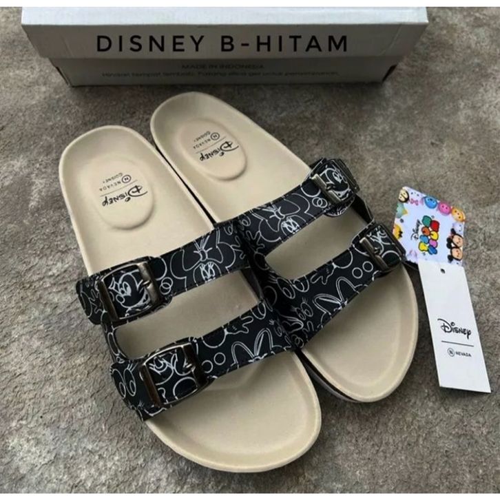 Sandal Wanita Disney Nevadaa Slop Double Strap Motif Mickey Mouse Sendal Selop Cewek Kekinian Nyaman Ringan Anti Slip