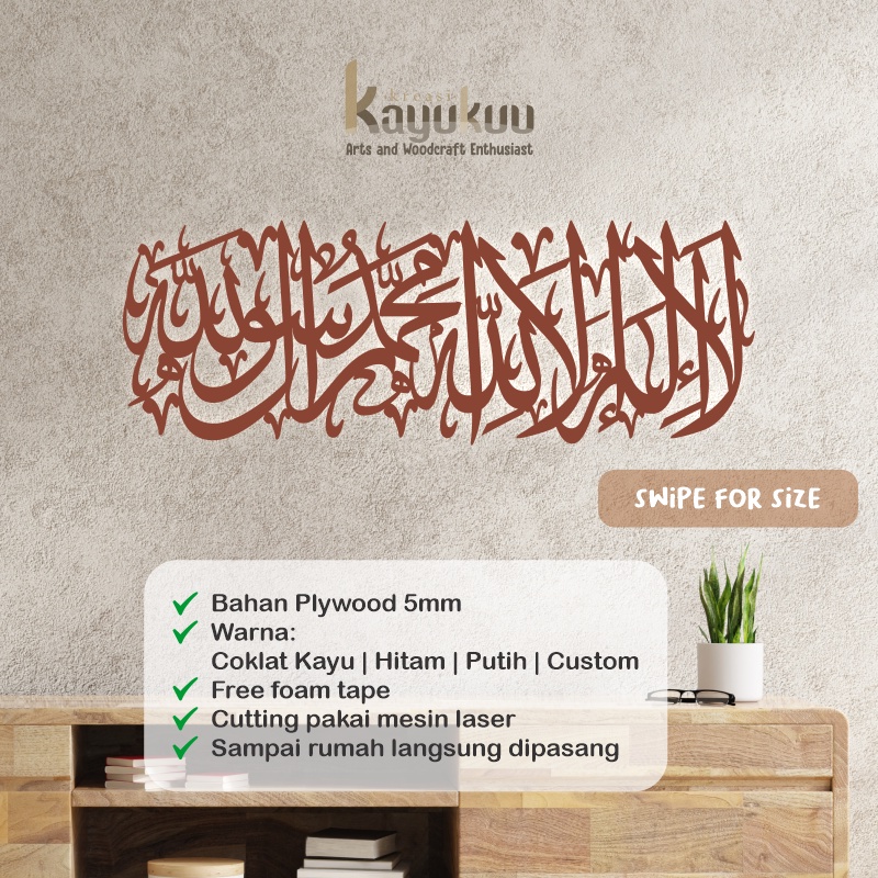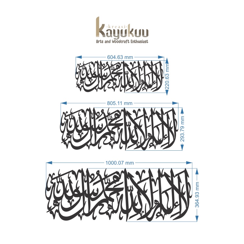 KREASIKAYUKUU HIASAN DINDING KALIGRAFI KAYU KALIMAT TAUHID PLYWOOD 5MM