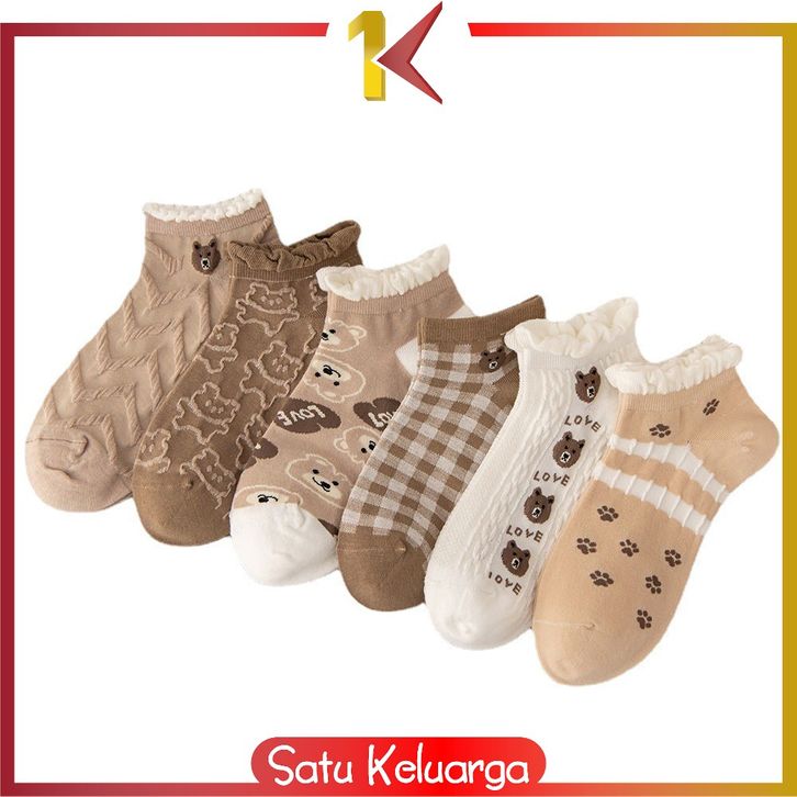 SK-P618 Ankle Socks Kaos Kaki Wanita Karakter Bear / Kaus Kaki Pendek Beruang Coklat / Kaos Kaki Semata Kaki Fashion