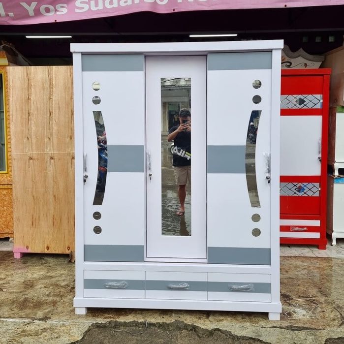 LEMARI BAJU SLIDING 3 PINTU LEMARI PAKAIAN