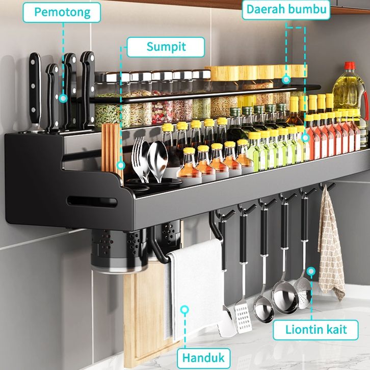 Rak Bumbu Dapur Dinding Kitchen Rack Bumbu Gantung Rak Sendok Garpu