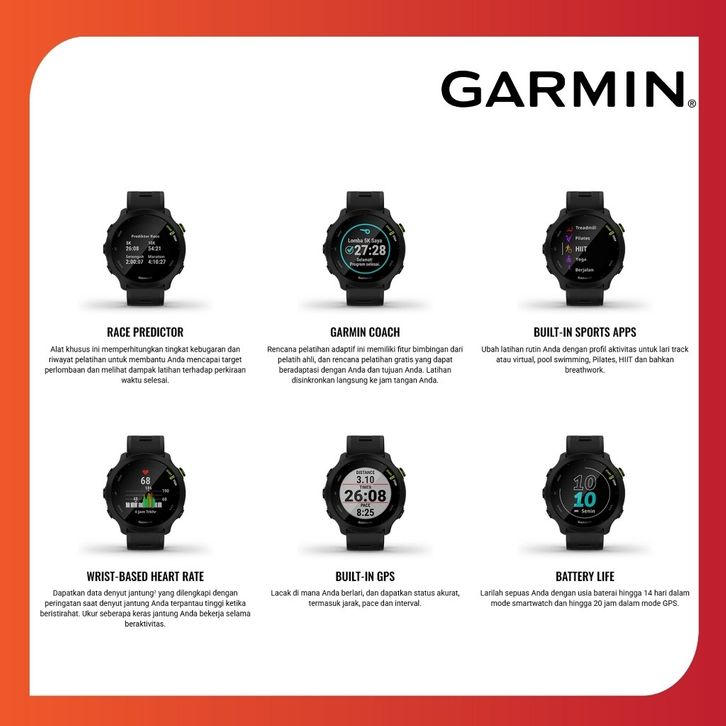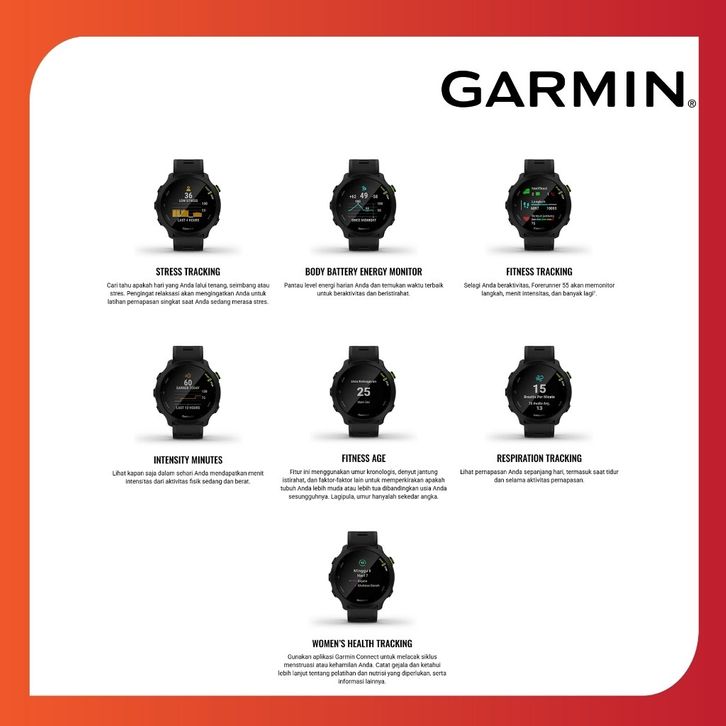 SMARTWATCH GARMIN ORIGINAL GARMIN FORERUNNER 55 GARMIN FR 55 ORIGINAL GARANSI RESMI TAM 2 TAHUN GARMIN OFFICIAL STORE