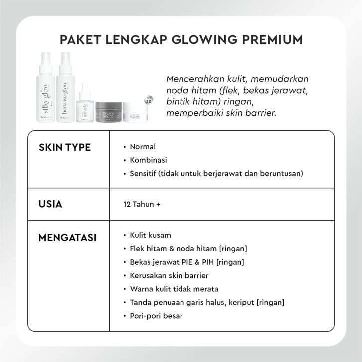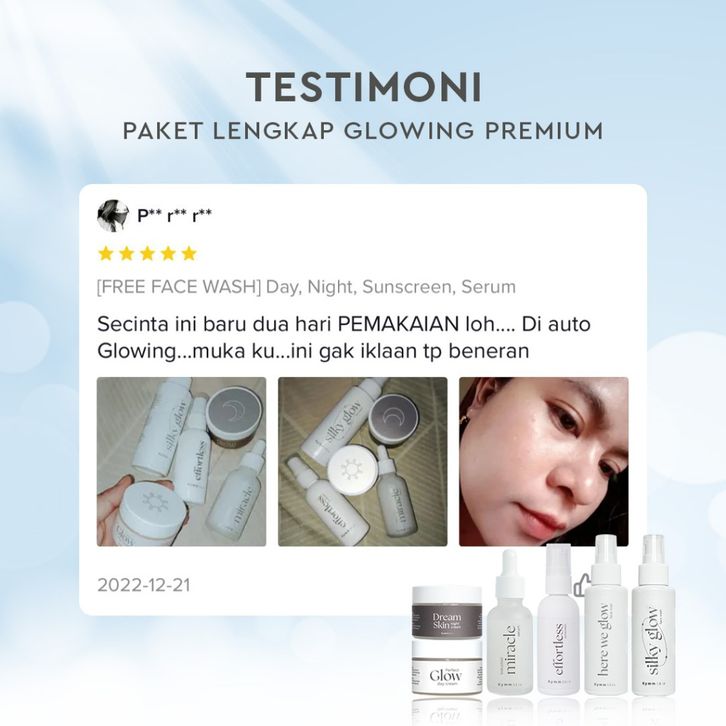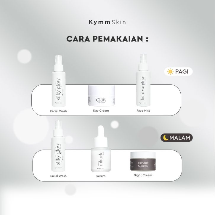 KYMM SKIN 5PCS FREE POUCH PAKET GLOWING PREMIUM FACE WASH 100ML FACE MIST 100ML BAKUCHIOL SERUM 20ML DAY CREAM 10GR NEW