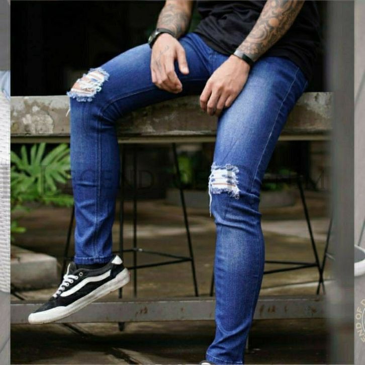 CELANA PRIA- Celana Ripped Jeans Pria-Celana Sobek Lutut Cowok-Celana Panjang Softjeans Melar