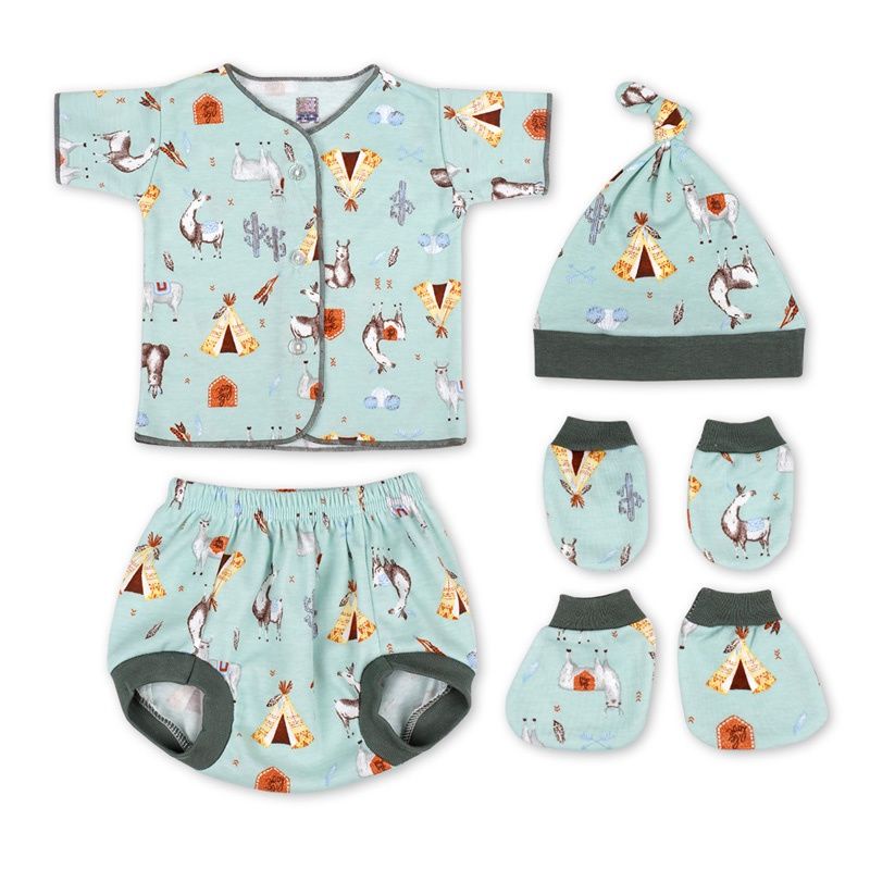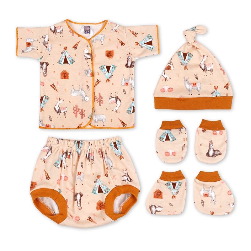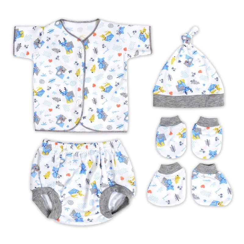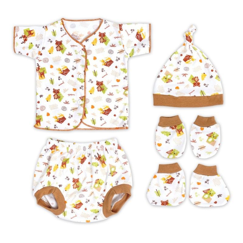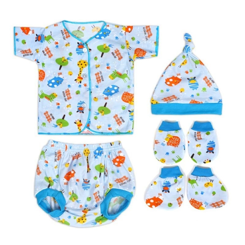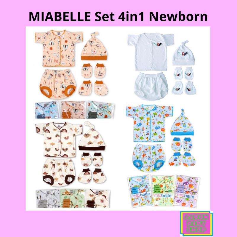 NEWBORN SET PENDEK 4IN1 MIABELLE MOTIF WARNA BAJU CELANA POP SARUNG TANGAN KAKI STK TOPI 4 IN 1 SNI