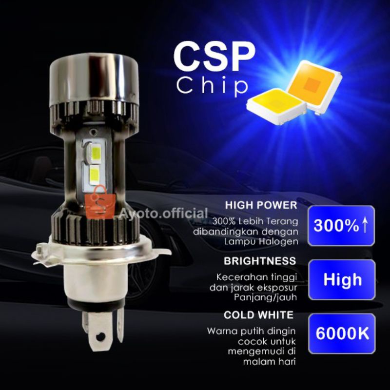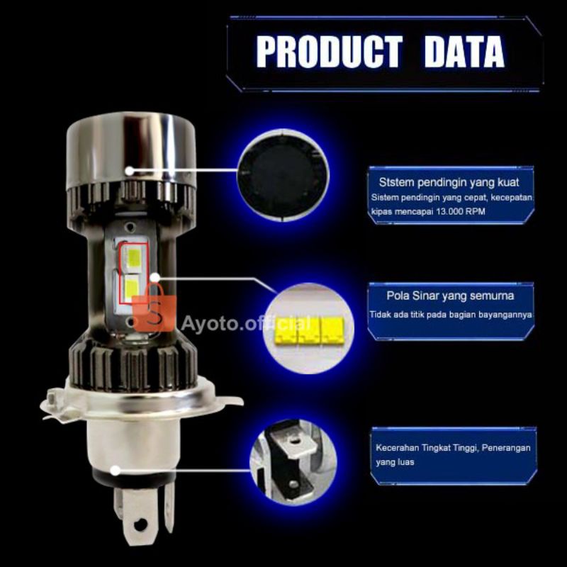 1 PCS LAMPU LED MOTOR AYOTO A2E-H4 WARNA PUTIH & KUNING PLUS ANGEL BIRU PNP 45 WATT MOBIL/MOTOR TRUCK 12-24VOLT