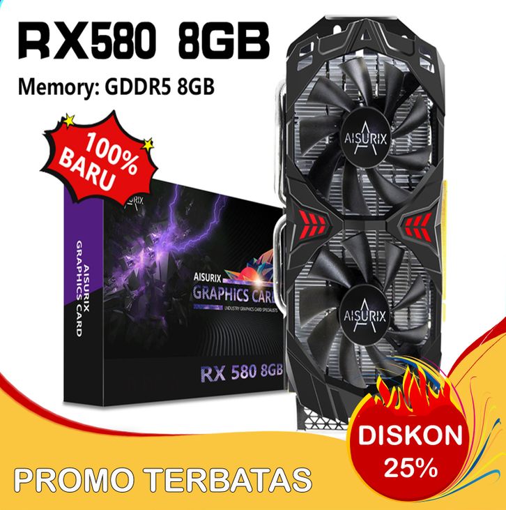 AISURIX VGA AMD RADEON RX 580 8GB VGA CARD DDR5 256BIT 2048SP HDMI NEW PC GAMING VGA