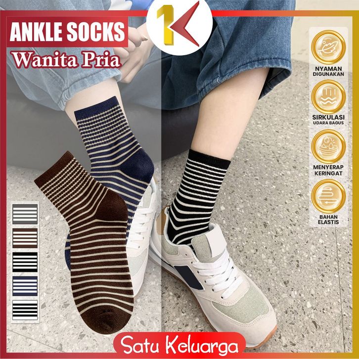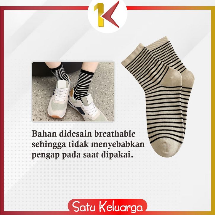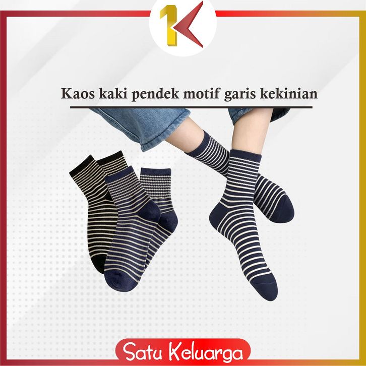 SK-P619 Kaos Kaki Wanita Pria Unisex Motif Garis Kekinian / Korean Striped Cotton Socks Kaus Kaki Pendek Wanita / Kaos