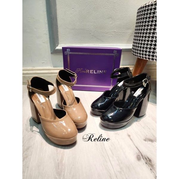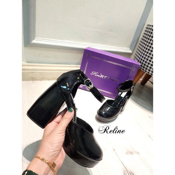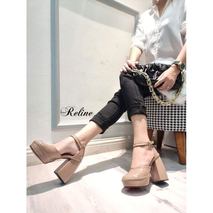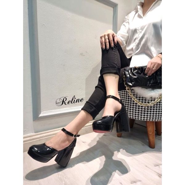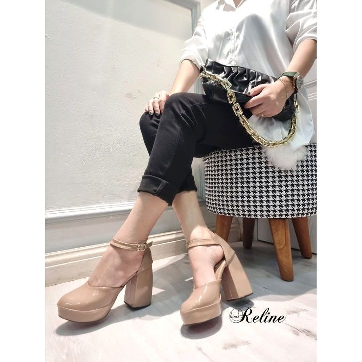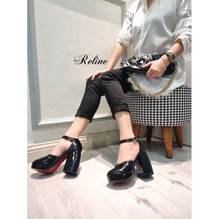 FREE ONGKIR SEPATU WANITA HEELS CHUNKY 3108 HAK BAKPAU TINGGI 9CM GLOSSY