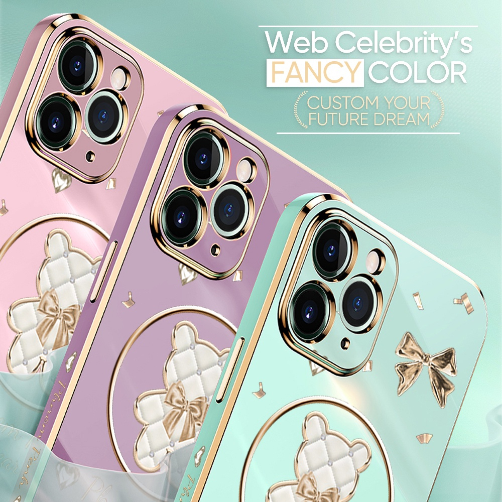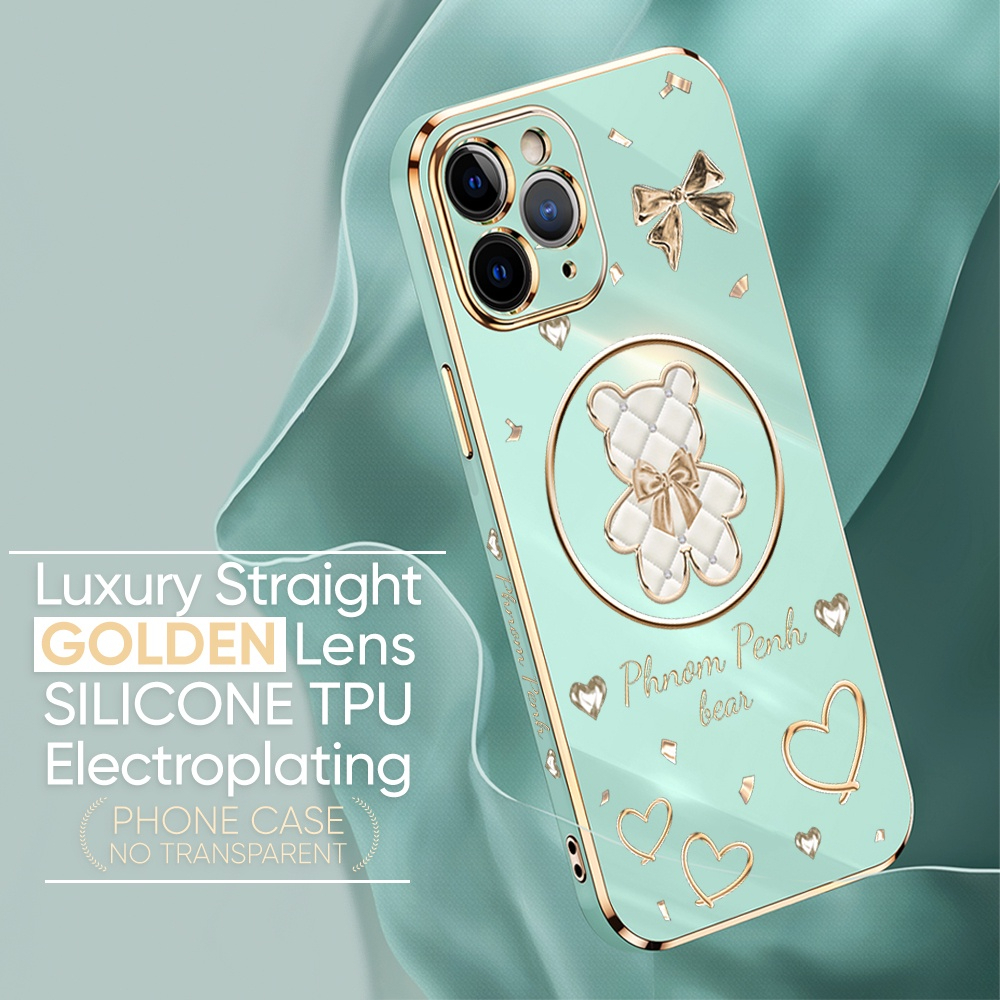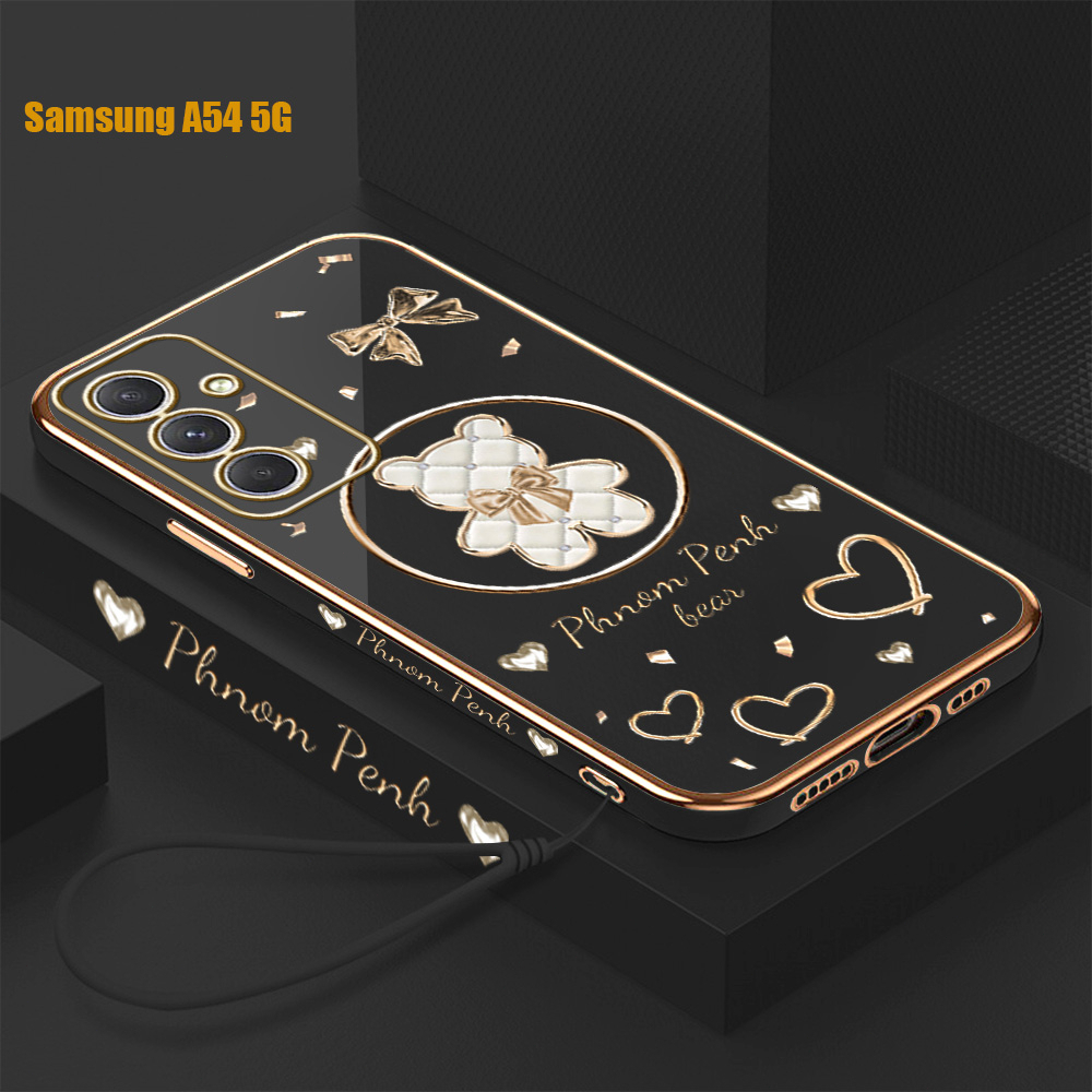 Casing Samsung Galaxy A14 A34 A54 4G 5G Free Lanyard Silikon Softcase Handphone Untuk Bear With Bow Soft Kesing Cover