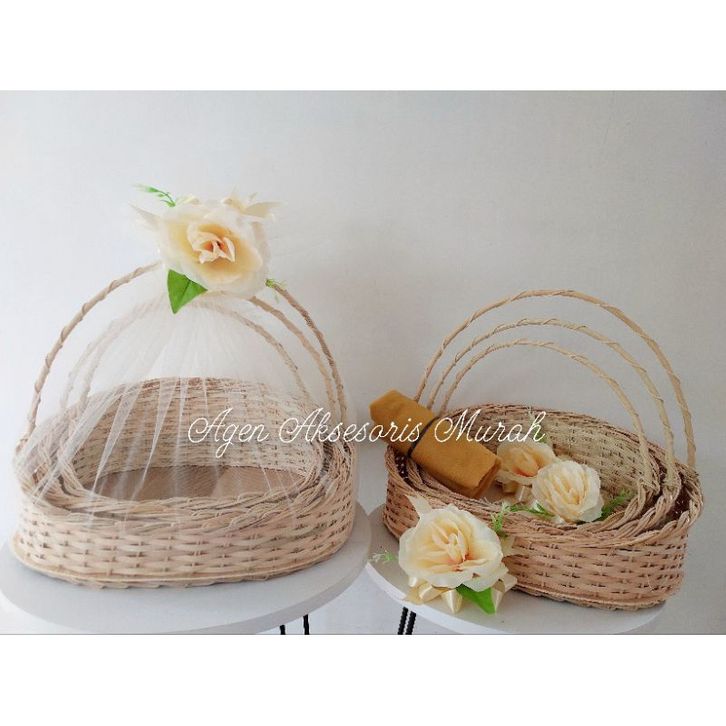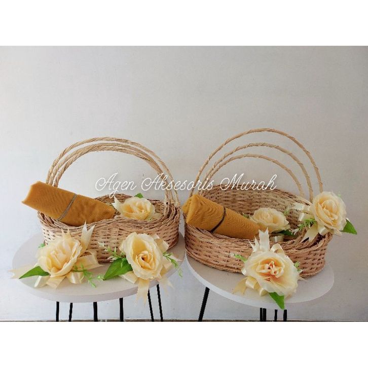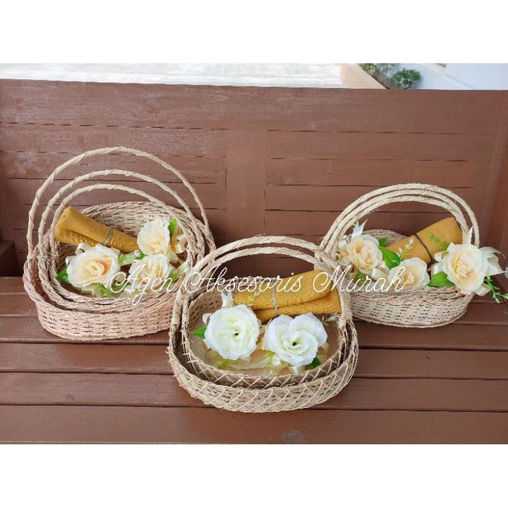 Kotak Hantaran Pernikahan / Keranjang Rotan Hantaran Free Tile Bunga