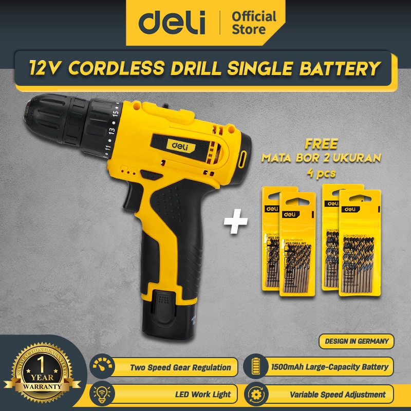 MESIN BOR DELI TANGAN BATERA CORDLESS DRILL BATTERY 12 VOLT BERKUALITAS