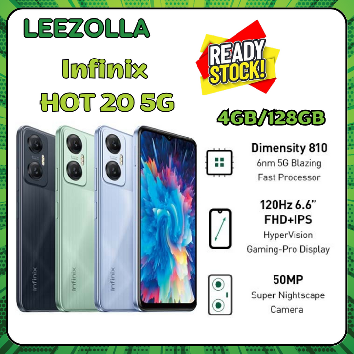 (LEEZOLLA) INFINIX HOT 20 5G 4GB+128GB | MediaTek Dimensity 810 | 5000mAh | Garansi 12 Bulan
