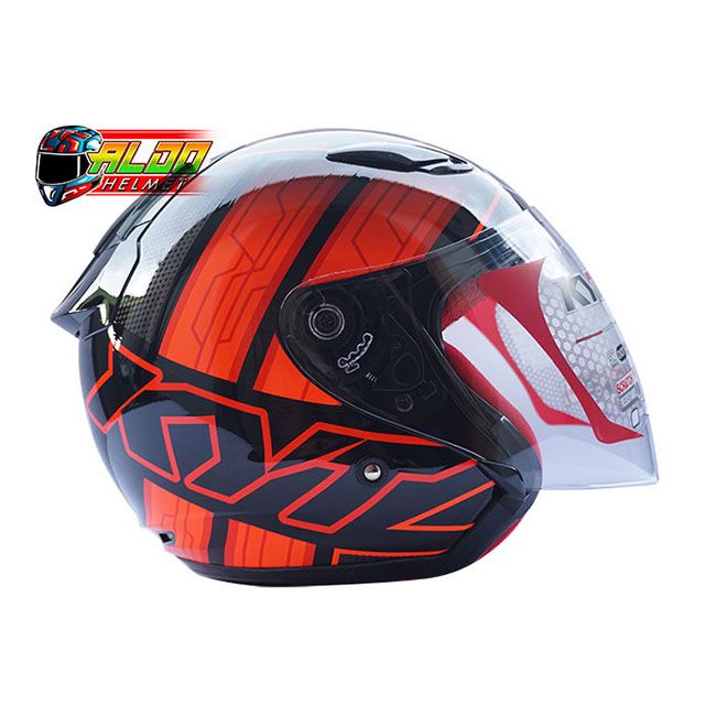 HELM KYT DJ MARU MOTIF #14 BLACK ORANGE RED FLUO