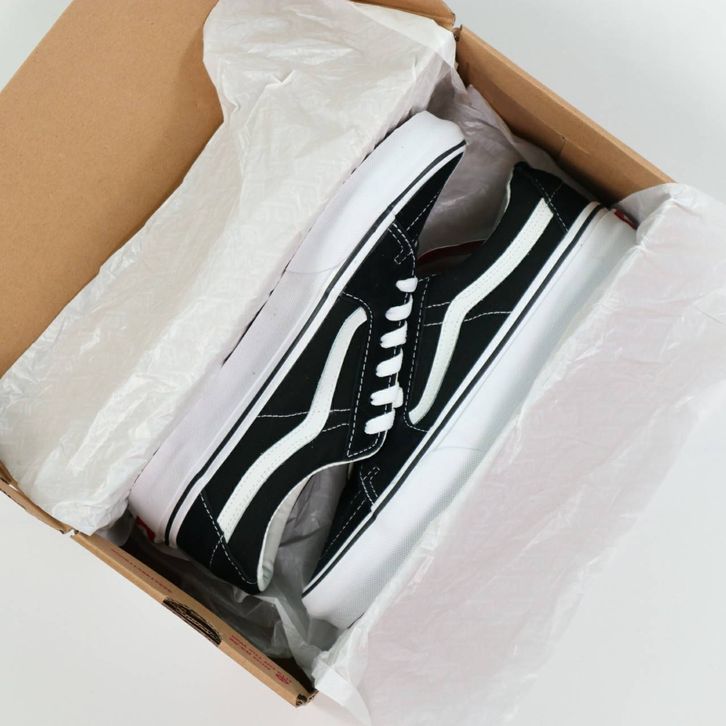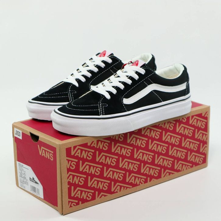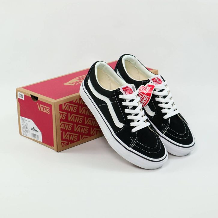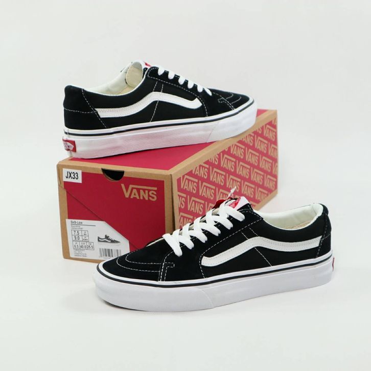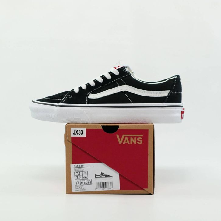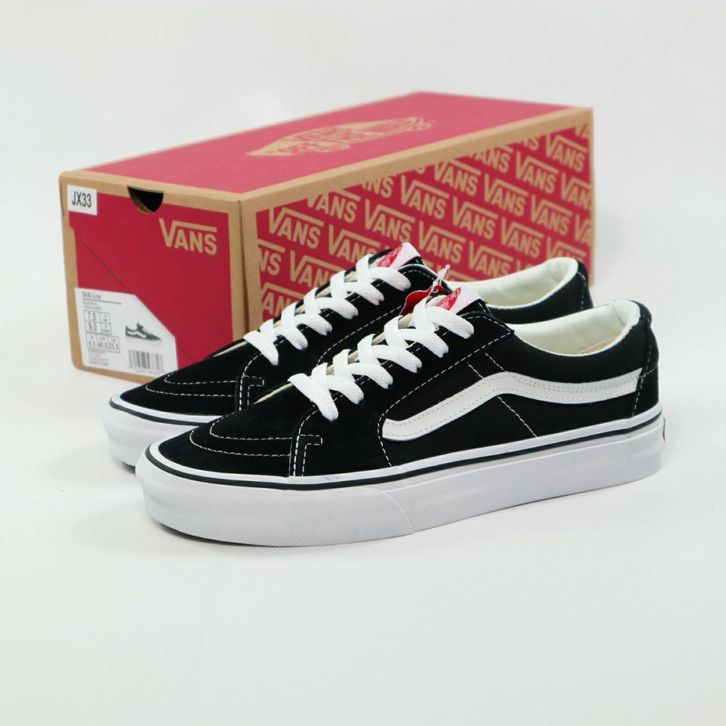 SEPATU VANS SK8 LOW CLASSICS BLACK WHITE ORIGINAL BNIB FULL TAG BARCODE BAHAN LEATHER CANVAS