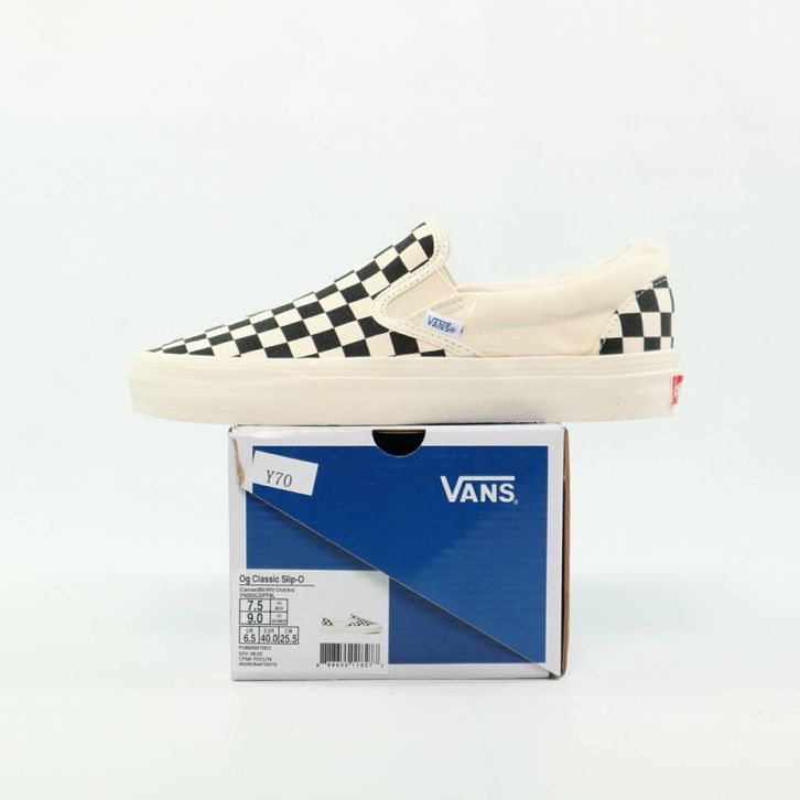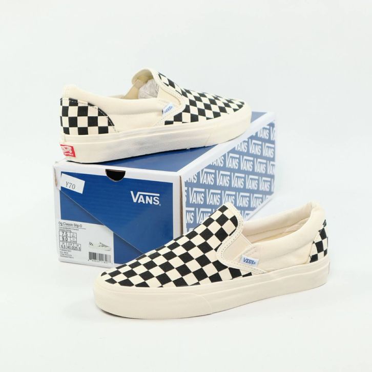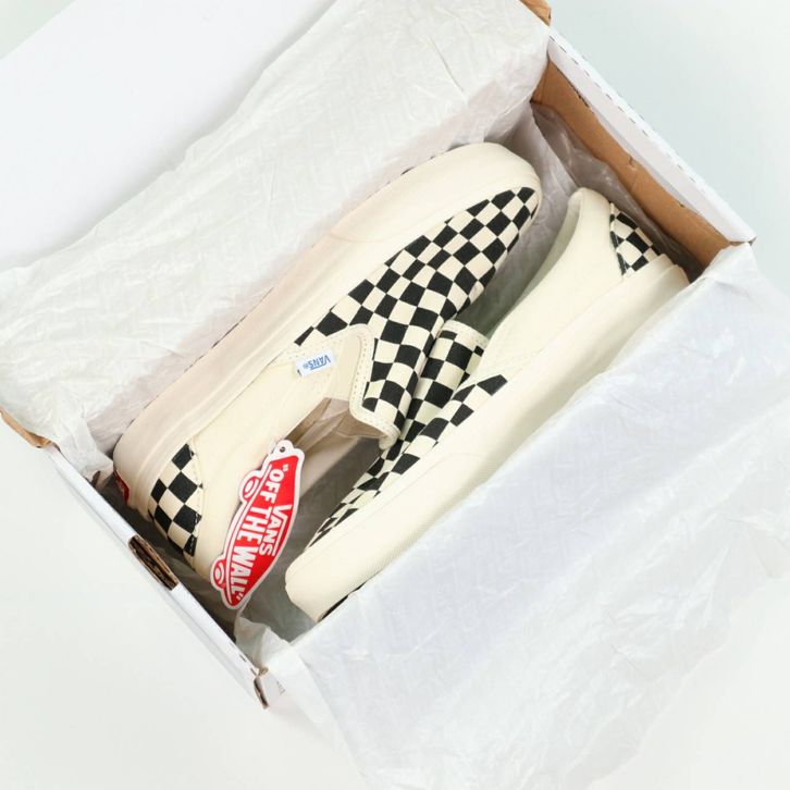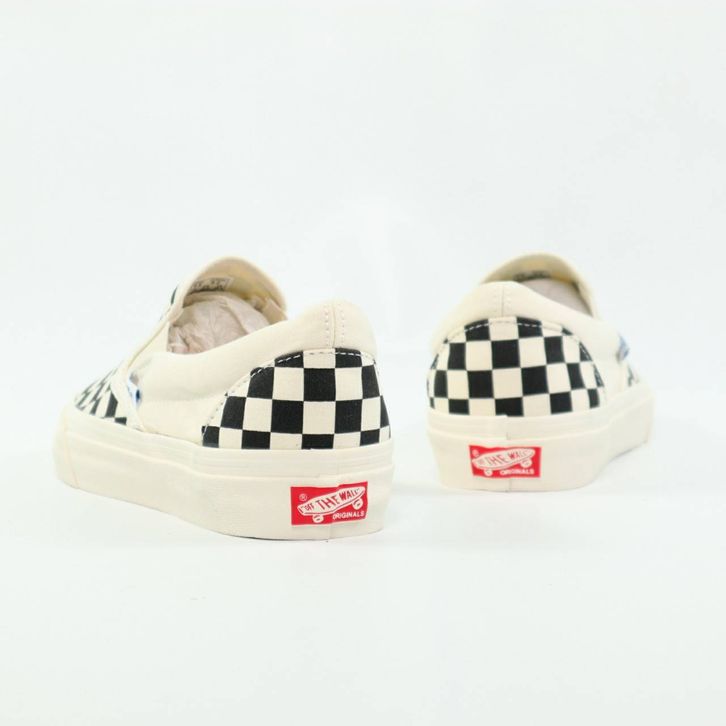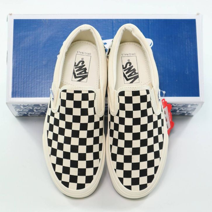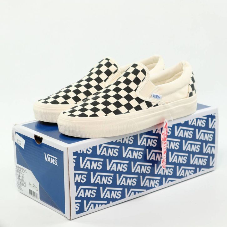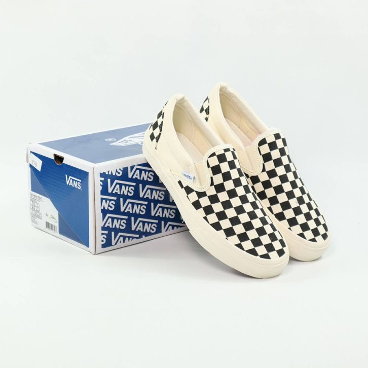 SEPATU VANS SLIP ON VAULT OG CHECKERBOARD BLACK WHITE ORIGINAL BNIB FULL TAG BARCODE BAHAN LEATHER CANVAS