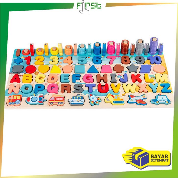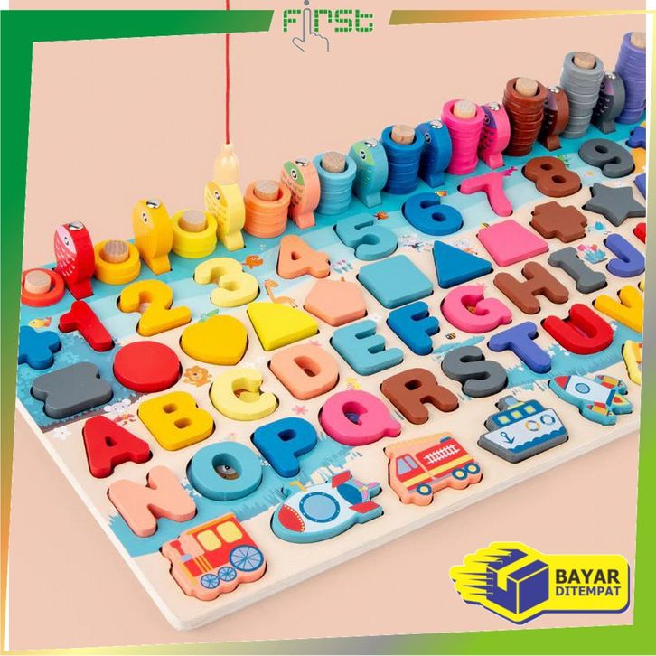 Mainan Anak FH-M94 Mainan Edukasi 7in1 Puzzle Kayu Anak Huruf dan Angka Pancing Ikan Montessori Wooden Toys