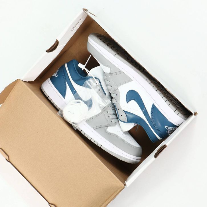 SEPATU NIKE AIR JORDAN 1 LOW STEAL WHITE FRENCH BLUE ORIGINAL BNIB FULL TAG BARCODE BAHAN LEATHER KULIT