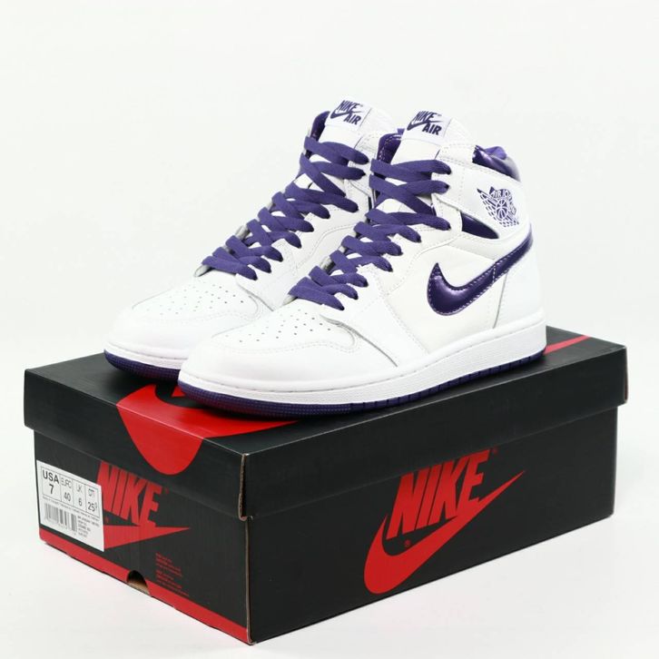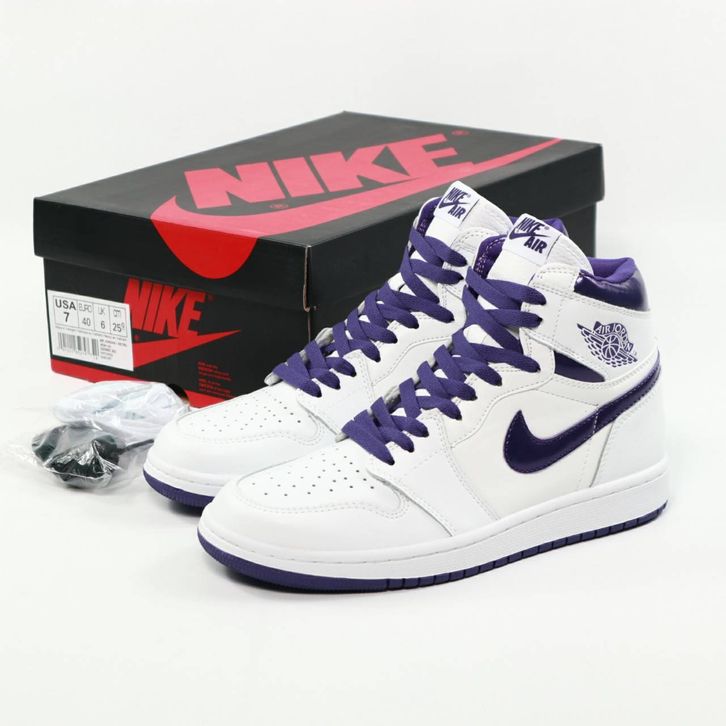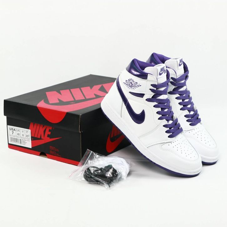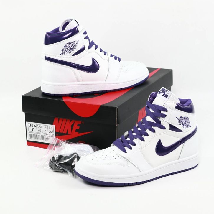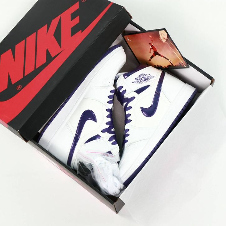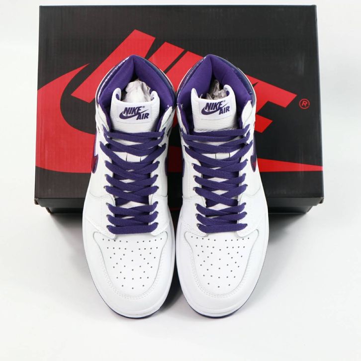 SEPATU NIKE AIR JORDAN 1 HIGH OG WHITE COURT PURPLE ORIGINAL BNIB FULL TAG BARCODE BAHAN LEATHER KULIT