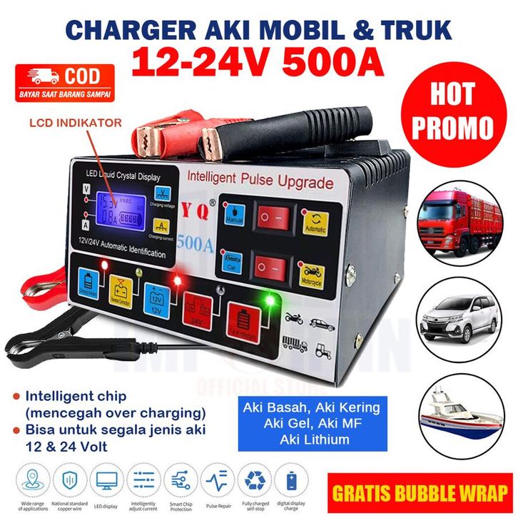 Charger Aki Mobil Motor 12V-24V 500A/ Charger Aki Otomatis Smart Intelligent Auto Repair Mobil Truk 500A