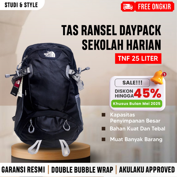 Ransel TNF 25 L Backpack Daypack Tas Punggung Sekolah Harian Kuliah Kerja Bahan Nyilon Berkualitas Dijamin Gak nyesel