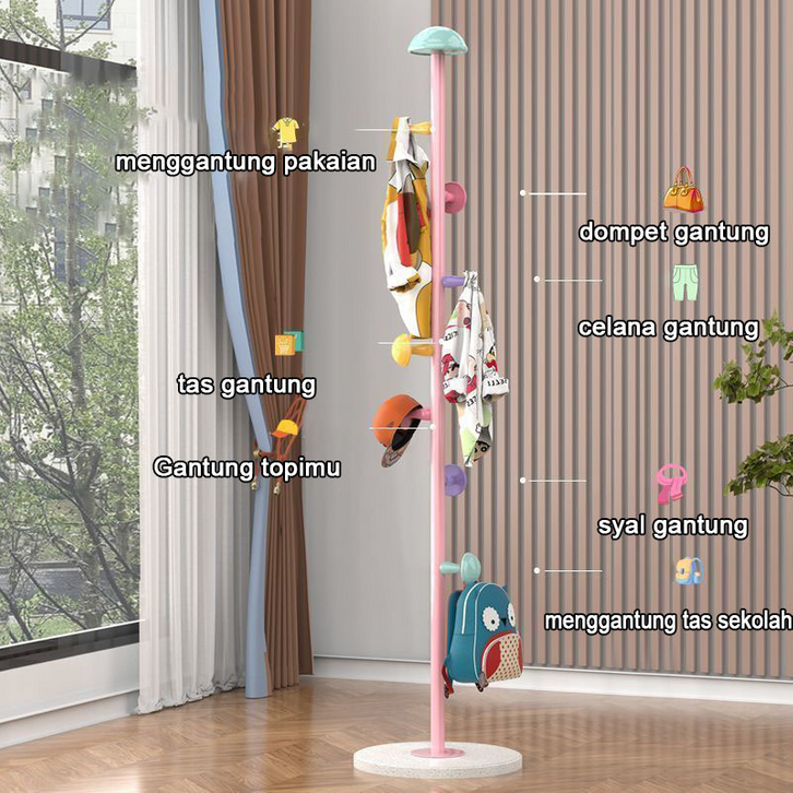 Gantungan Baju Berdiri Vertikal Rak Pakaian Mantel Tas Topi Minimalis Serbaguna