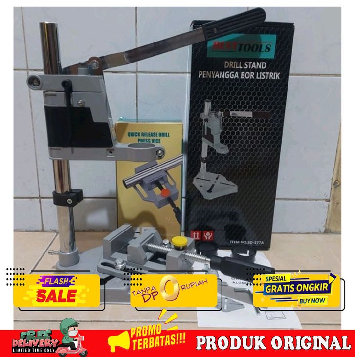 ORIGINAL!!!PAKET STAND DRILL MESIN BOR TANGAN ALUMUNIUM BASE + VICE DRILL PRESS / RAGUM