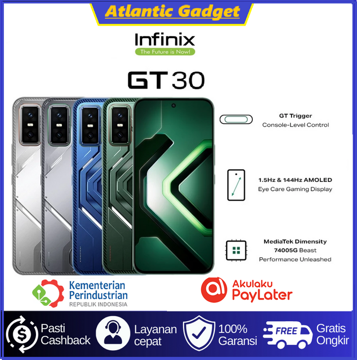 Infinix GT 30 5G 8/256GB - Up to 16GB Extended RAM - Dimensity 7400 5G - Layar 6.78" AMOLED+ 144Hz - Kamera 64MP - NFC