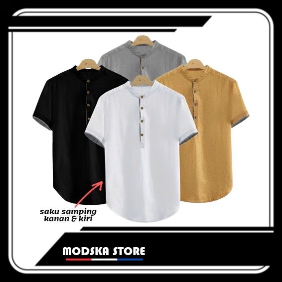 Koko Pria Dewasa Koko Kurta Taqwa Pakaian Muslim Lengan Pendek Matt Katun Adem Tebal Terlaris