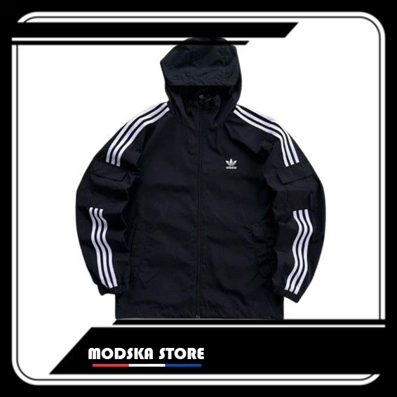 Jaket Pria Parasut Outdoor Adidas Full Teg & Lebel