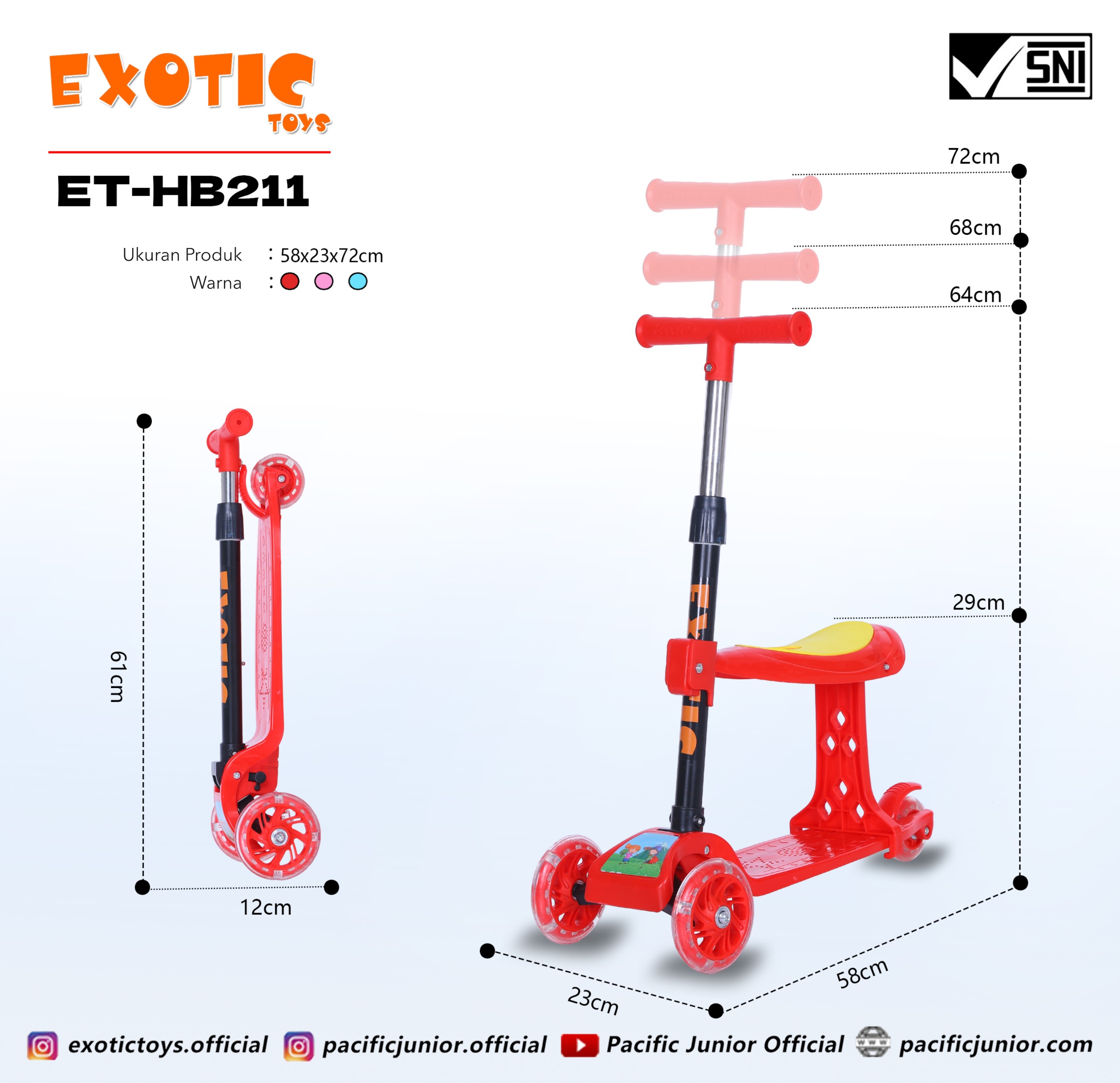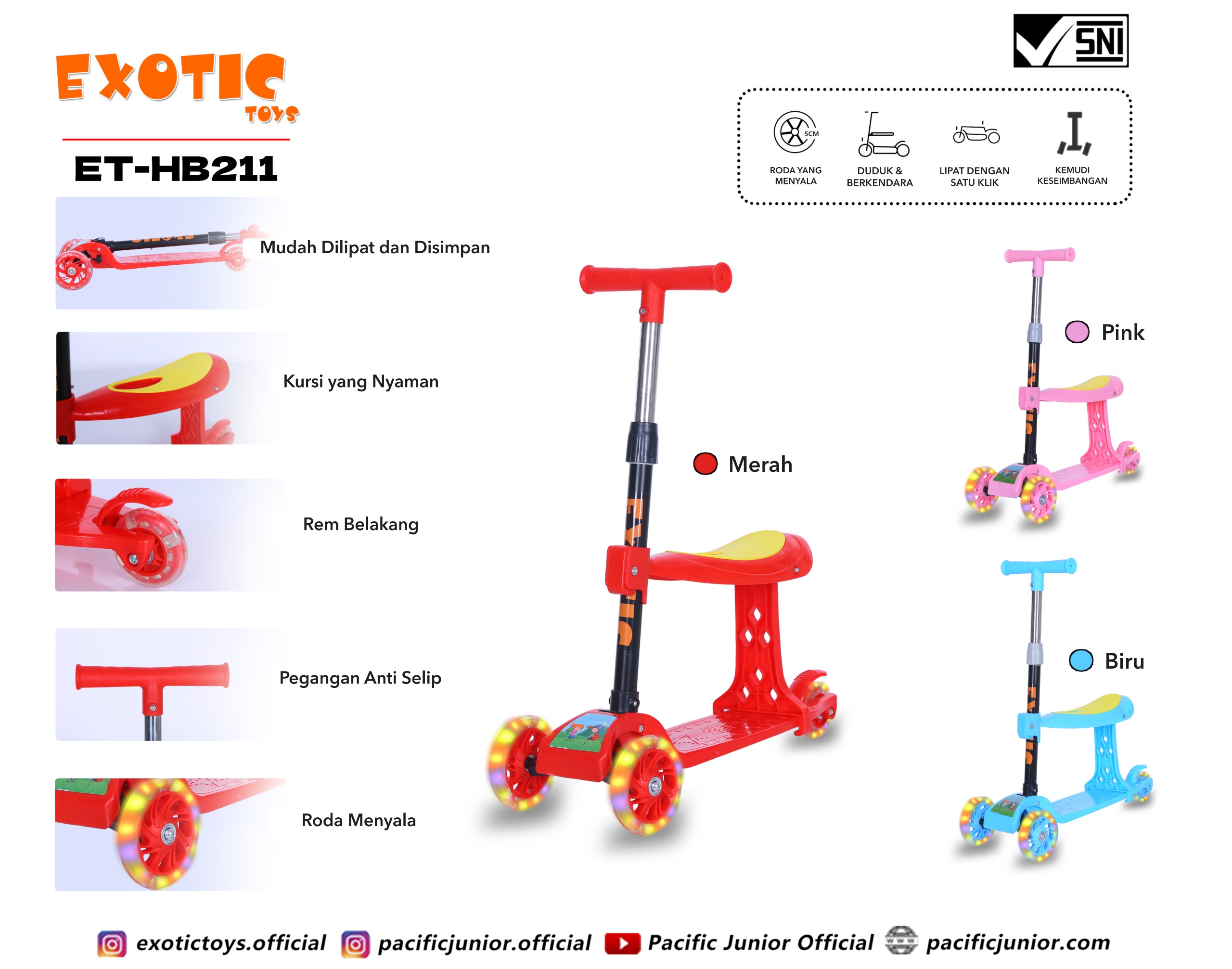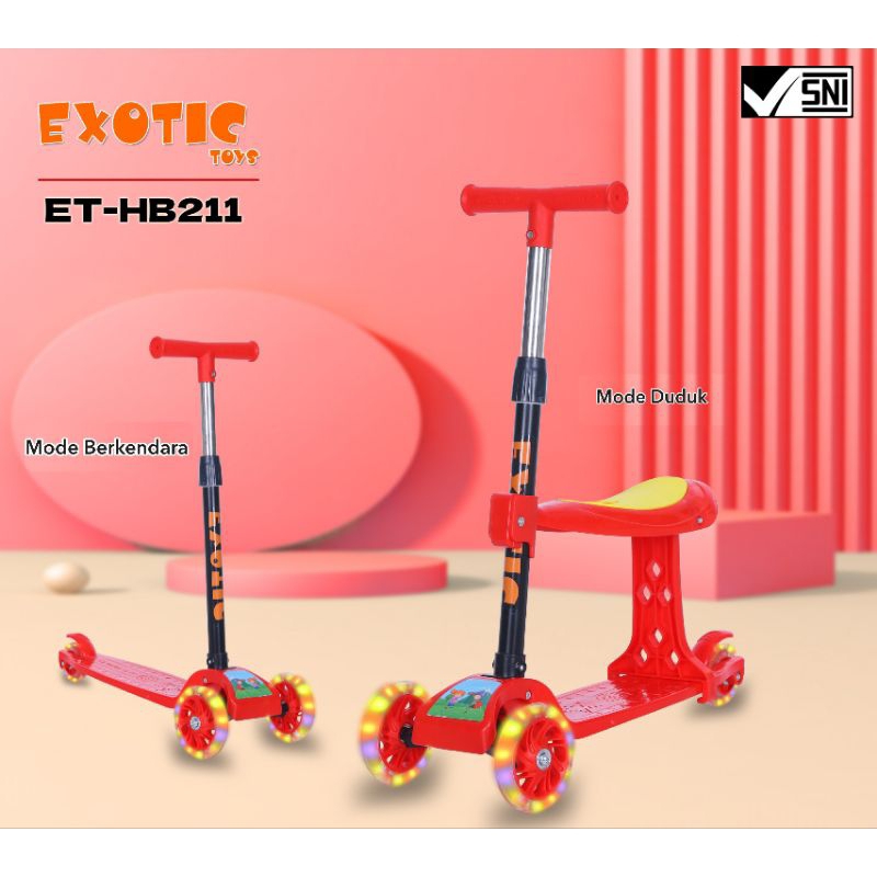 Scooter Anak Roda 3 EXOTIC ET HB 211 Bisa Duduk dan Berdiri 2 in 1