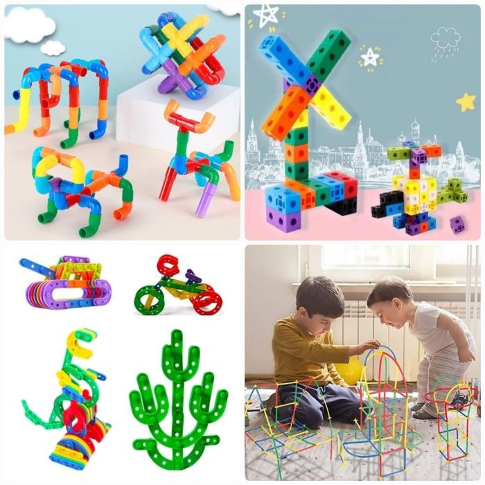 Mainan Anak DIY Bongkar Pasang Puzzle Sedotan DIY MAGIC STRAW -