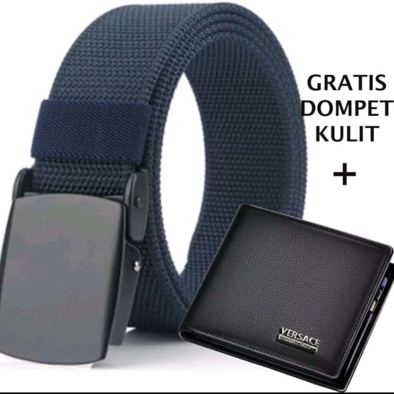 ikat pinggang pria BONUS DOMPET KULIT panjang 125cm gesper pria kerja dan Sekolah
