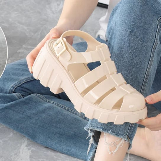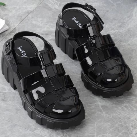 Sandal Wedges Jelly Glossy Wanita Sandal Import Kekinian Tali Fashion Wanita AKIRO