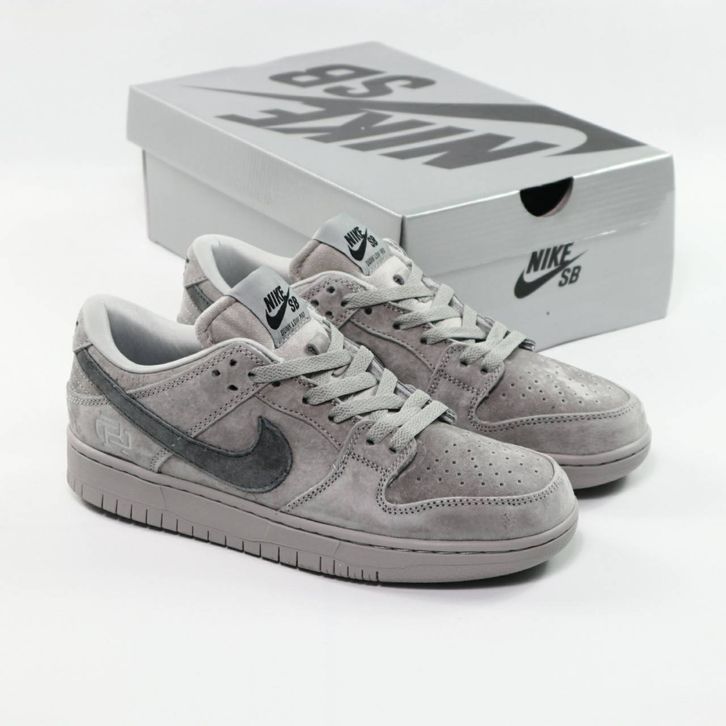 SEPATU NIKE SB DUNK LOW PRO QS CHAMP GREY ORIGINAL BNIB FULL TAG BARCODE BAHAN LEATHER KULIT SUEDE