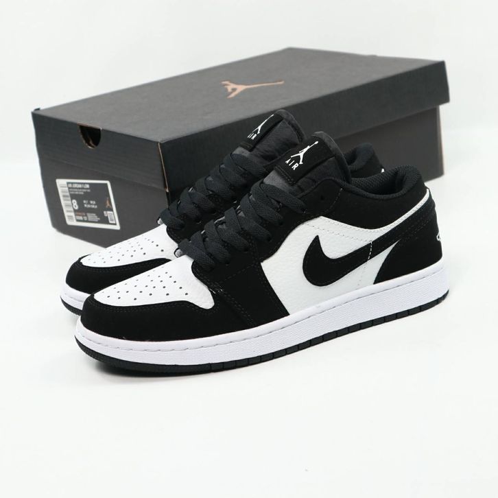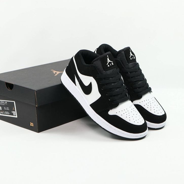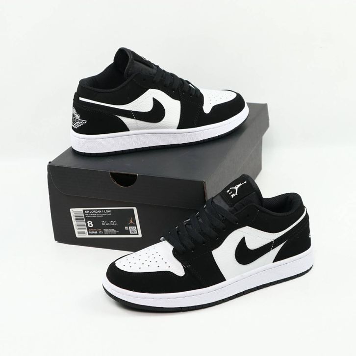 SEPATU NIKE AIR JORDAN 1 LOW BLACK WHITE PANDA ORIGINAL BNIB FULL TAG BARCODE BAHAN LEATHER KULIT