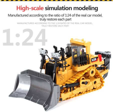 Mainan RC Bulldozer 1:24 9CH Alloy Truck 2.4Ghz Remote Control Crane di cas Kekuatan Besar