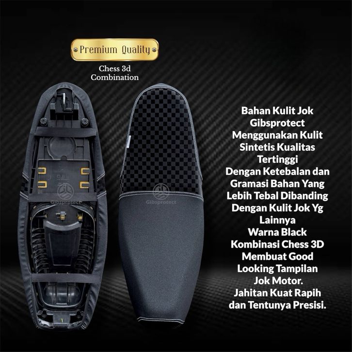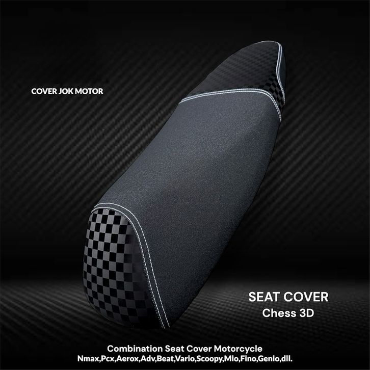 SARUNG JOK MOTOR KULIT VARIASI CHESS 3D KARBON KOMBINASI BAHAN AMPLAS KASAR MODEL NMAX AEROX PCX ADV
