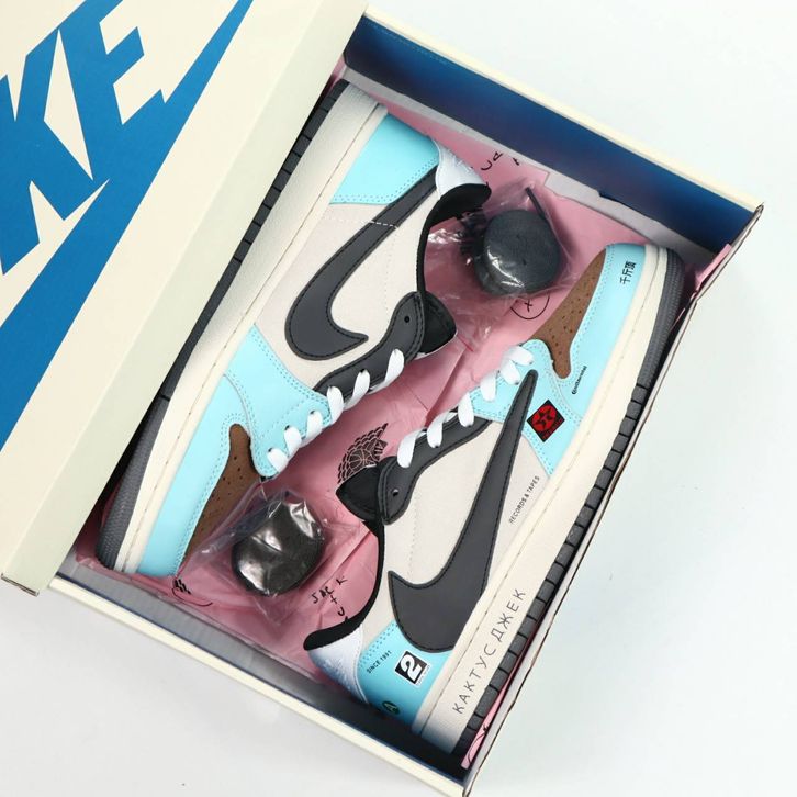SEPATU TRAVIS SCOTT X NIKE AIR JORDAN 1 LOW OG SP JACKBOYS PLANER GREY BLACK LAKE BLUE ORIGINAL BNIB FULL TAG BARCO