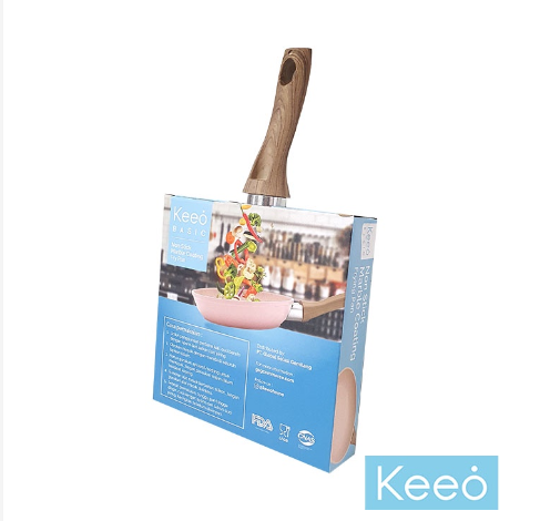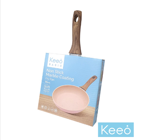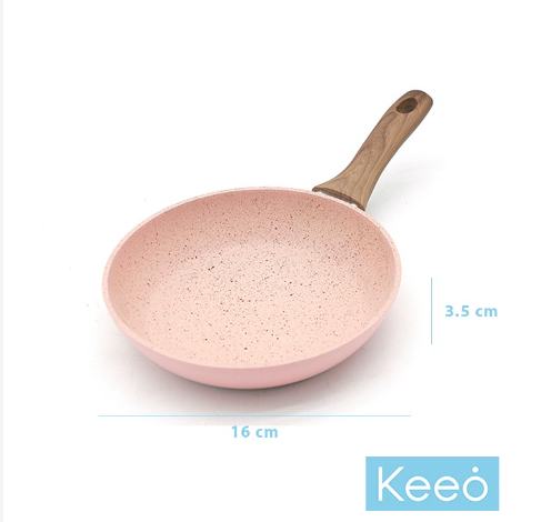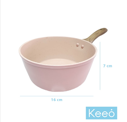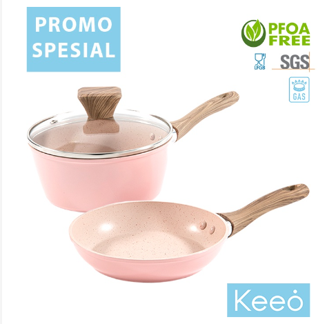 Panci, Wajan dan Tutup Anti Lengket Keeo 16 cm Marble Granit Bundling MPASI Pink